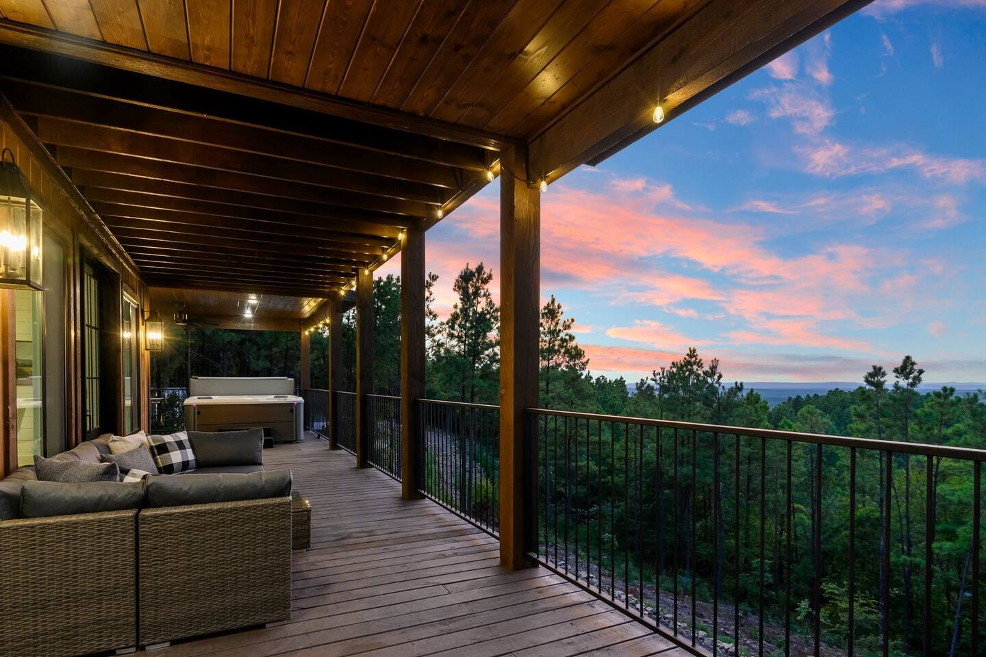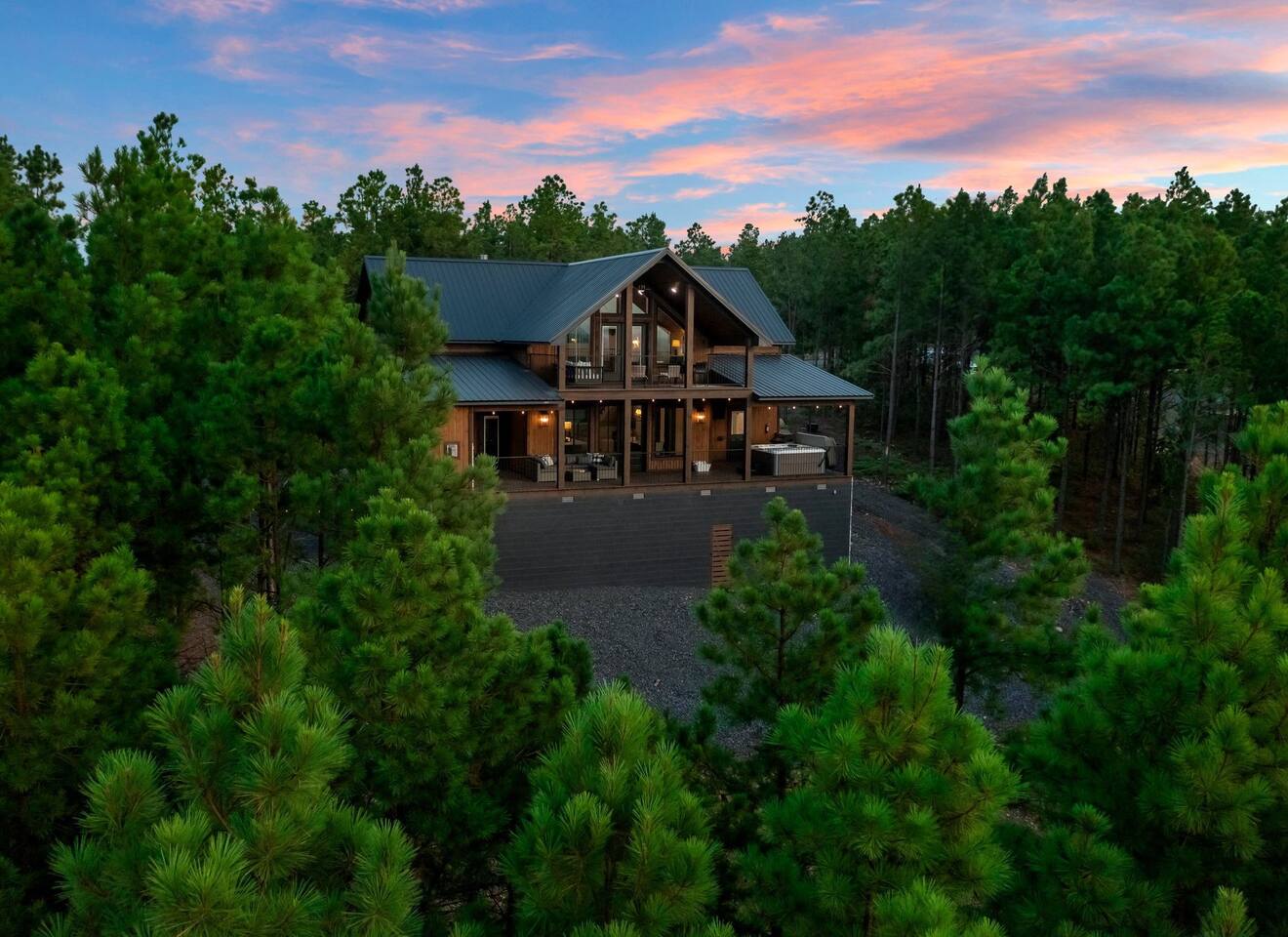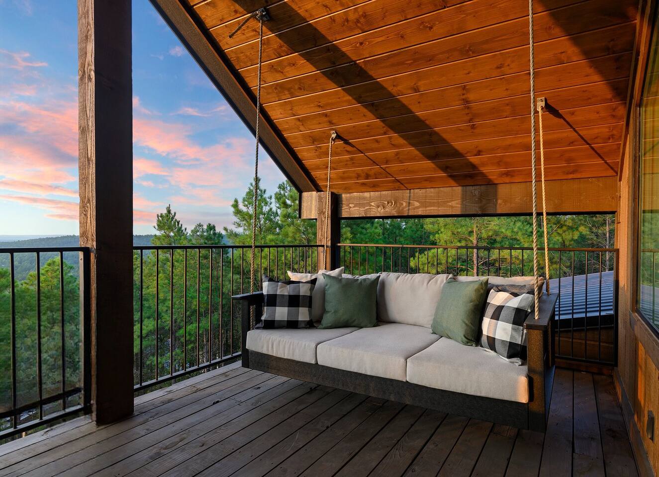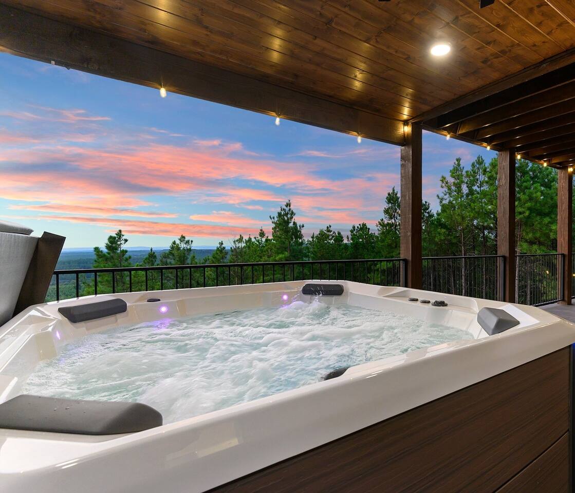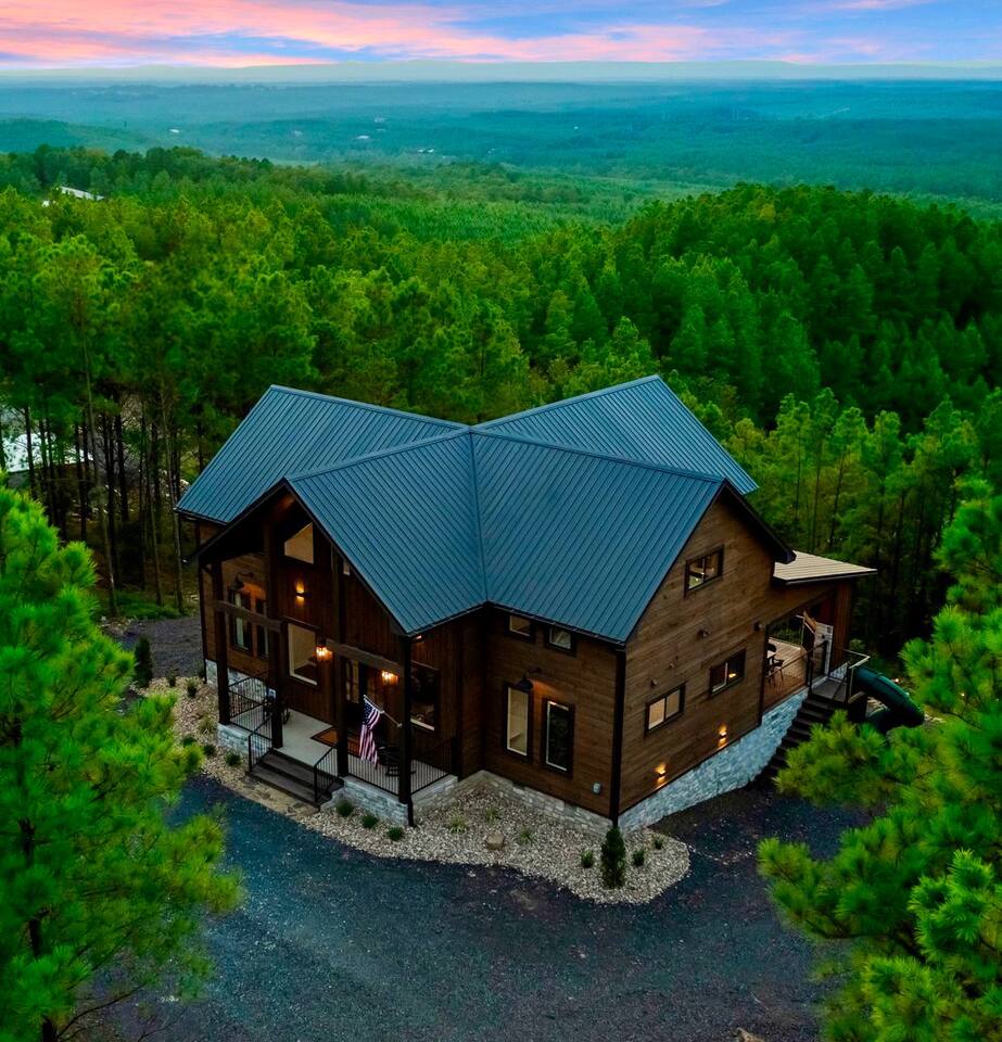 Retreat to this luxurious 3 bedroom/3 bathroom cabin overlooking the Ouachita/Kiamichi mountain range just minutes from Hochatown. The breathtaking panoramic mountain views are spectacular all around the cabin including from the hot tub, firepit, daybed swing, and double decks!! Custom built in 2024, Mountain Ridge Retreat is nestled among peaceful pine trees in Carter Mountain West. This rustic luxe cabin is sure to provide the rest & relaxation you & your family or friends need for a getaway!