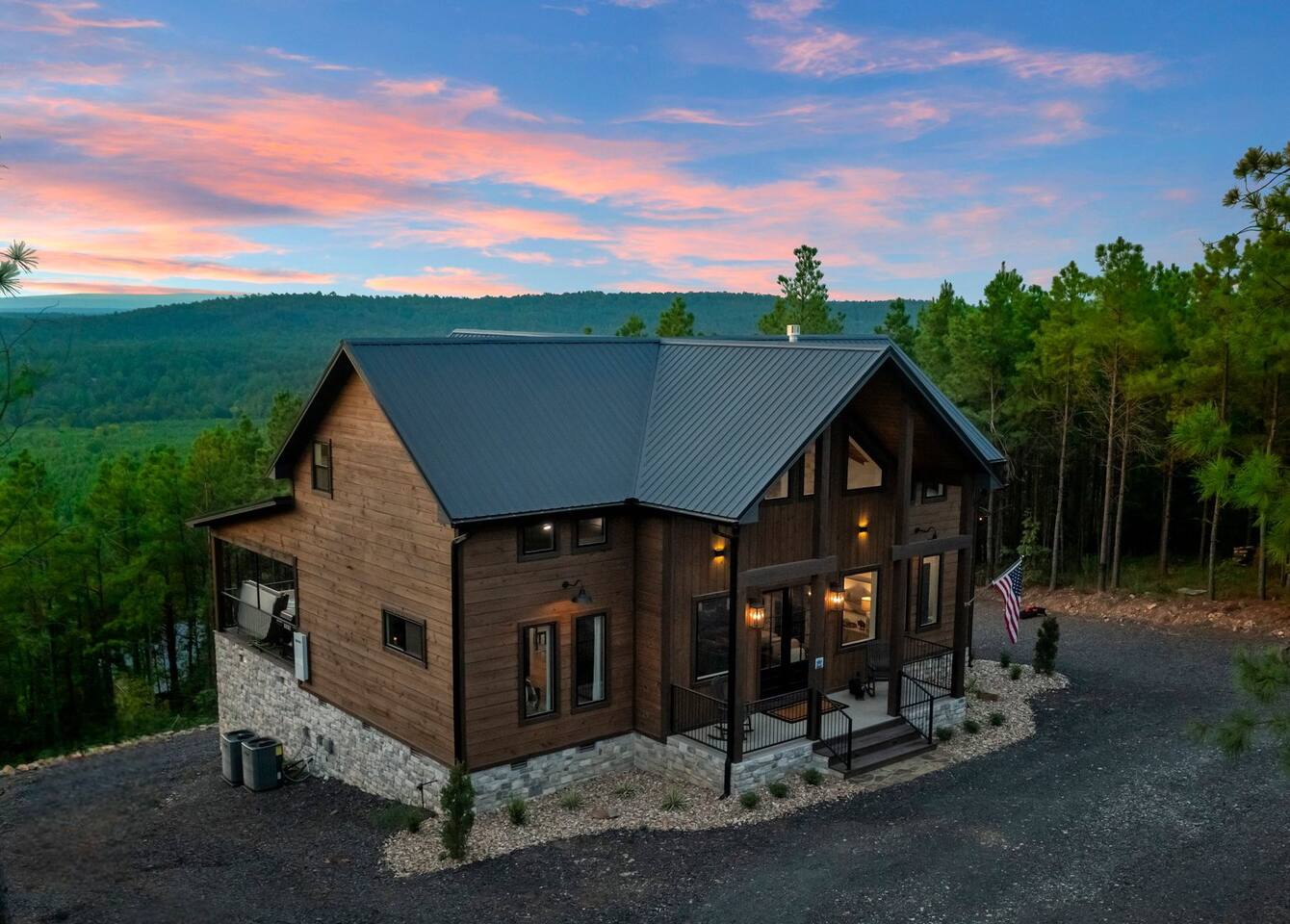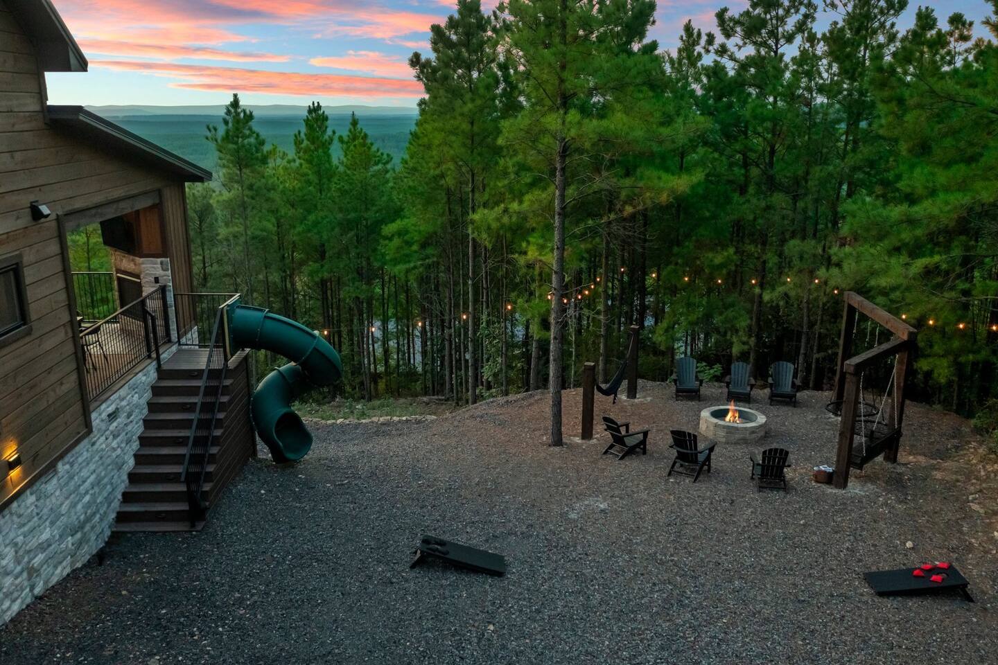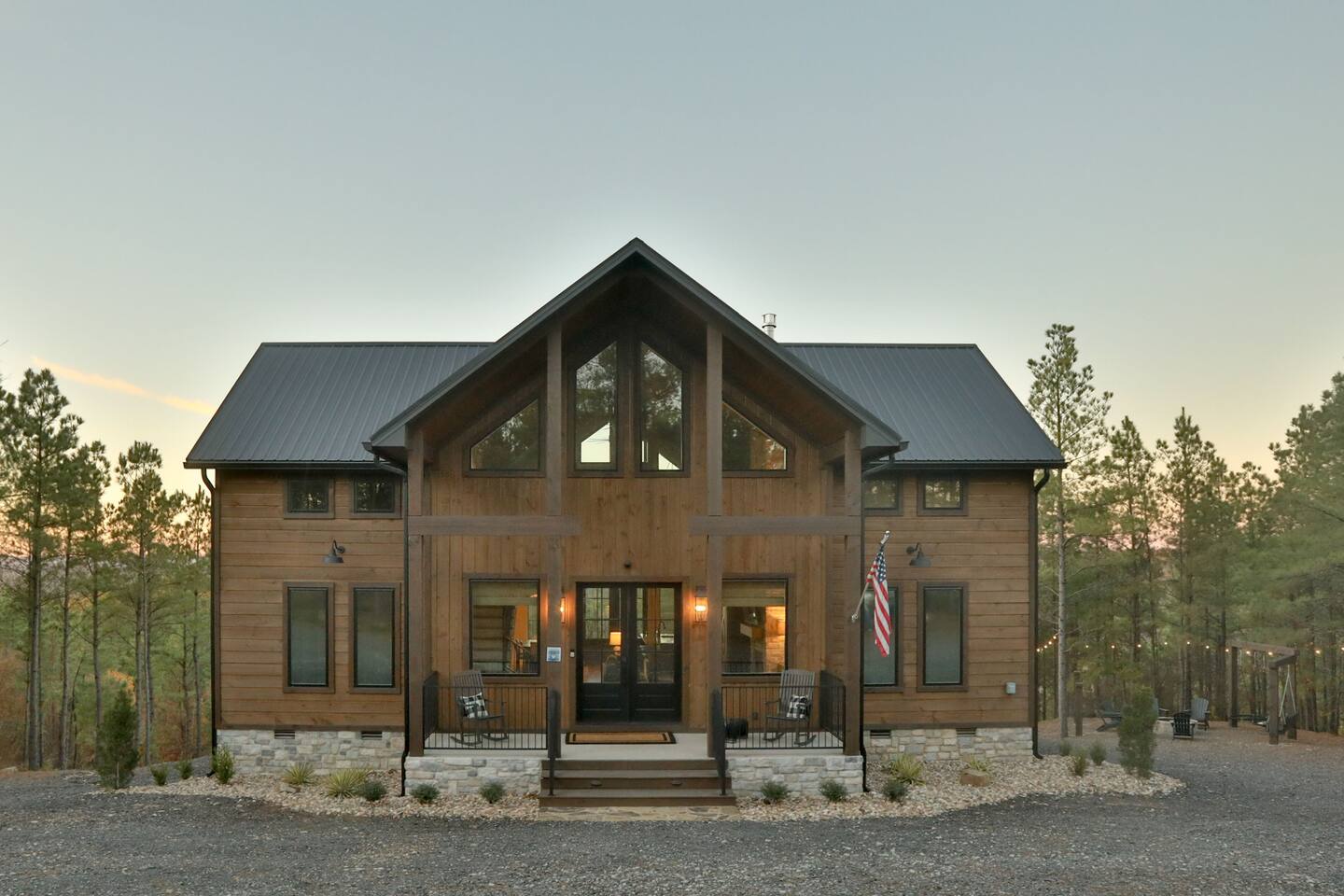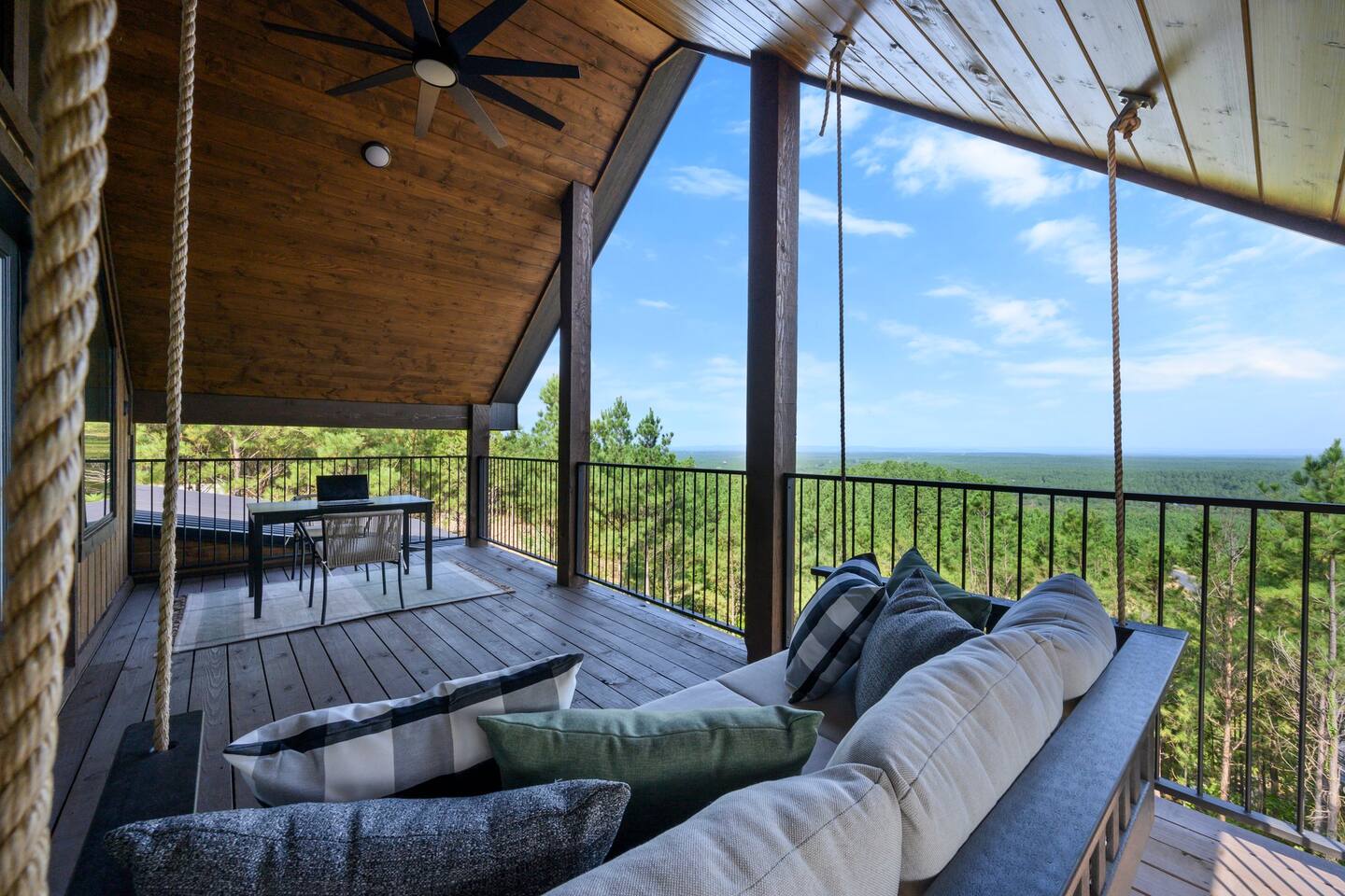 Retreat to this luxurious 3 bedroom/3 bathroom cabin overlooking the Ouachita/Kiamichi mountain range just minutes from Hochatown. The breathtaking panoramic mountain views are spectacular all around the cabin including from the hot tub, firepit, daybed swing, and double decks!! Custom built in 2024, Mountain Ridge Retreat is nestled among peaceful pine trees in Carter Mountain West. This rustic luxe cabin is sure to provide the rest & relaxation you & your family or friends need for a getaway!
