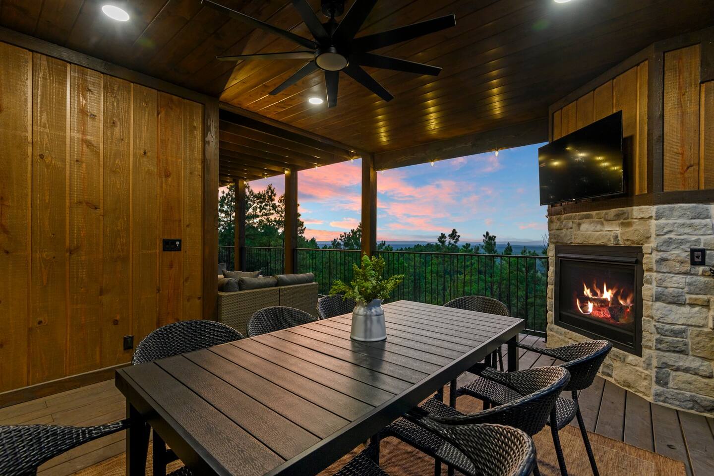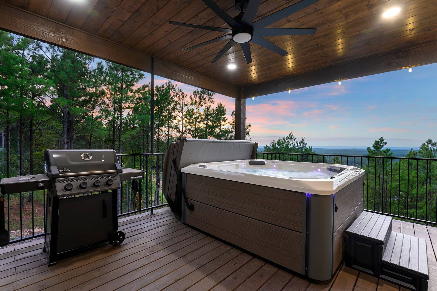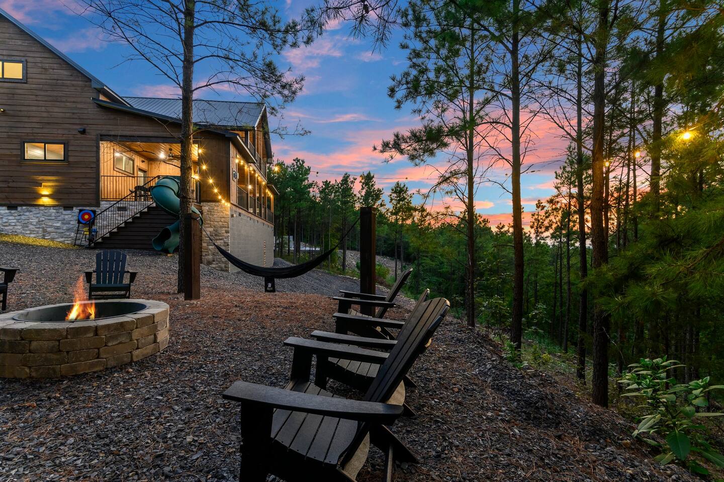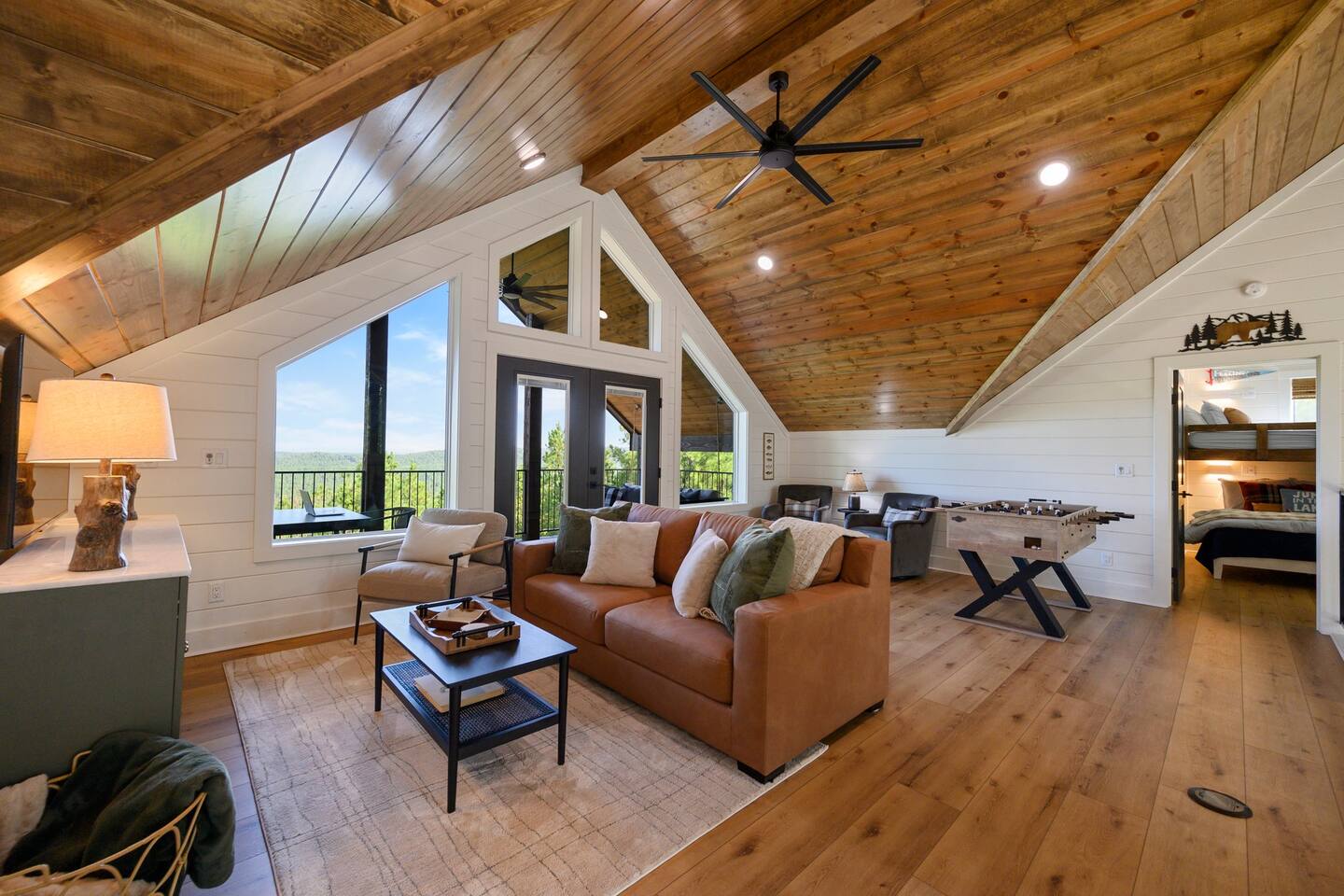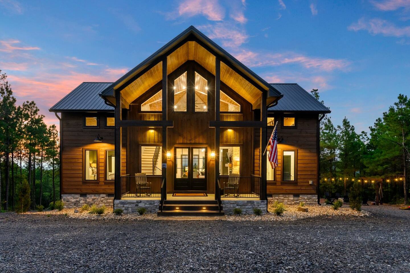 Retreat to this luxurious 3 bedroom/3 bathroom cabin overlooking the Ouachita/Kiamichi mountain range just minutes from Hochatown. The breathtaking panoramic mountain views are spectacular all around the cabin including from the hot tub, firepit, daybed swing, and double decks!! Custom built in 2024, Mountain Ridge Retreat is nestled among peaceful pine trees in Carter Mountain West. This rustic luxe cabin is sure to provide the rest & relaxation you & your family or friends need for a getaway!
